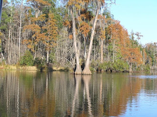 We took a guided tour in a boat on the swamp, between thousands of Cypress trees, some of them 900 years old. The trees has a kind of beard which is a plant hanging from them, called Spanish moss. It's a kind of Bromelia actually.